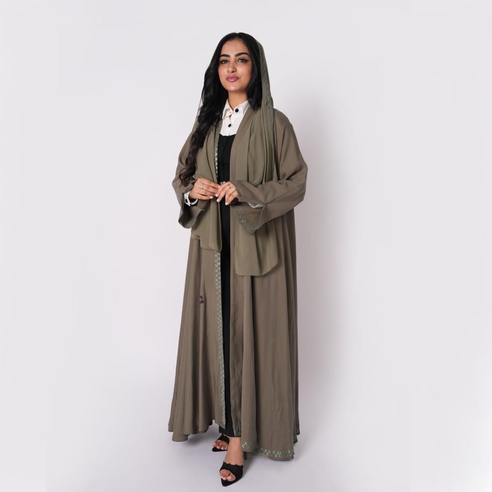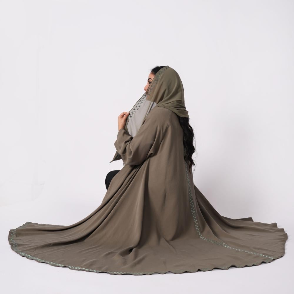 عباية زيتية أنيقة بتصميم كلوش كامل يمنحها لمسة فاخرة وانسيابية جذابة. تتميز بلونها الغني وتفصيلها الواسع الذي يضفي أناقة وعصرية على الإطلالة، مثالية للمرأة التي تبحث عن التميز والراحة في كل خطوة.